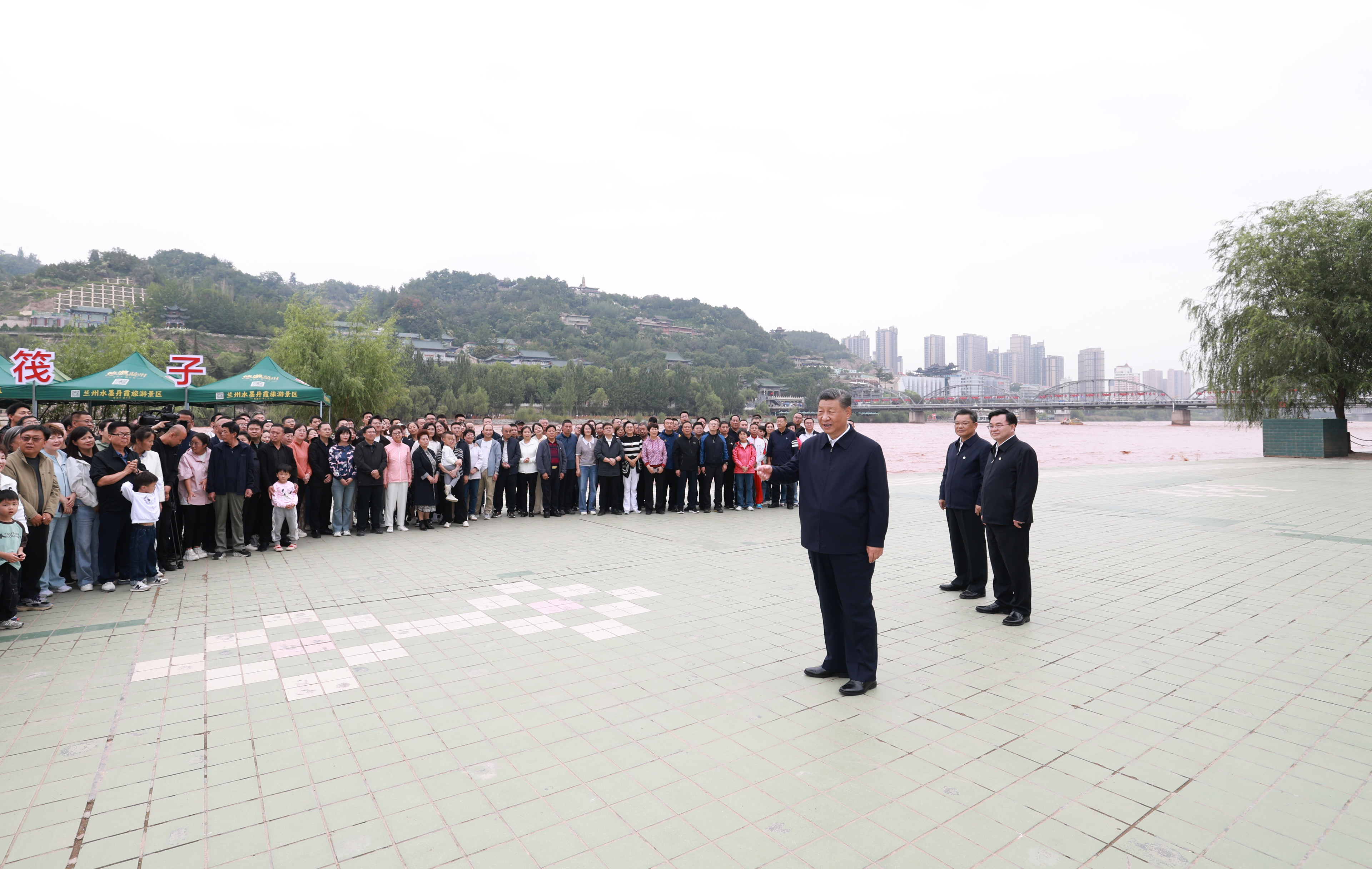 9月10日至13日,中共中央总书记、国家主席、中央军委主席习近平在甘肃考察。这是11日下午,习近平在黄河兰州中山桥段考察时,同在场的干部群众亲切交流。新华社记者 王晔 摄