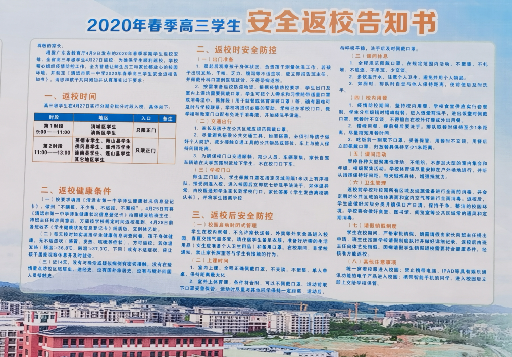 马正勇(前排中)在清远市第一中学实验学校检查学生返校准备工作