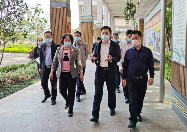 马正勇(中)在清远市第一中学检查学生返校准备工作